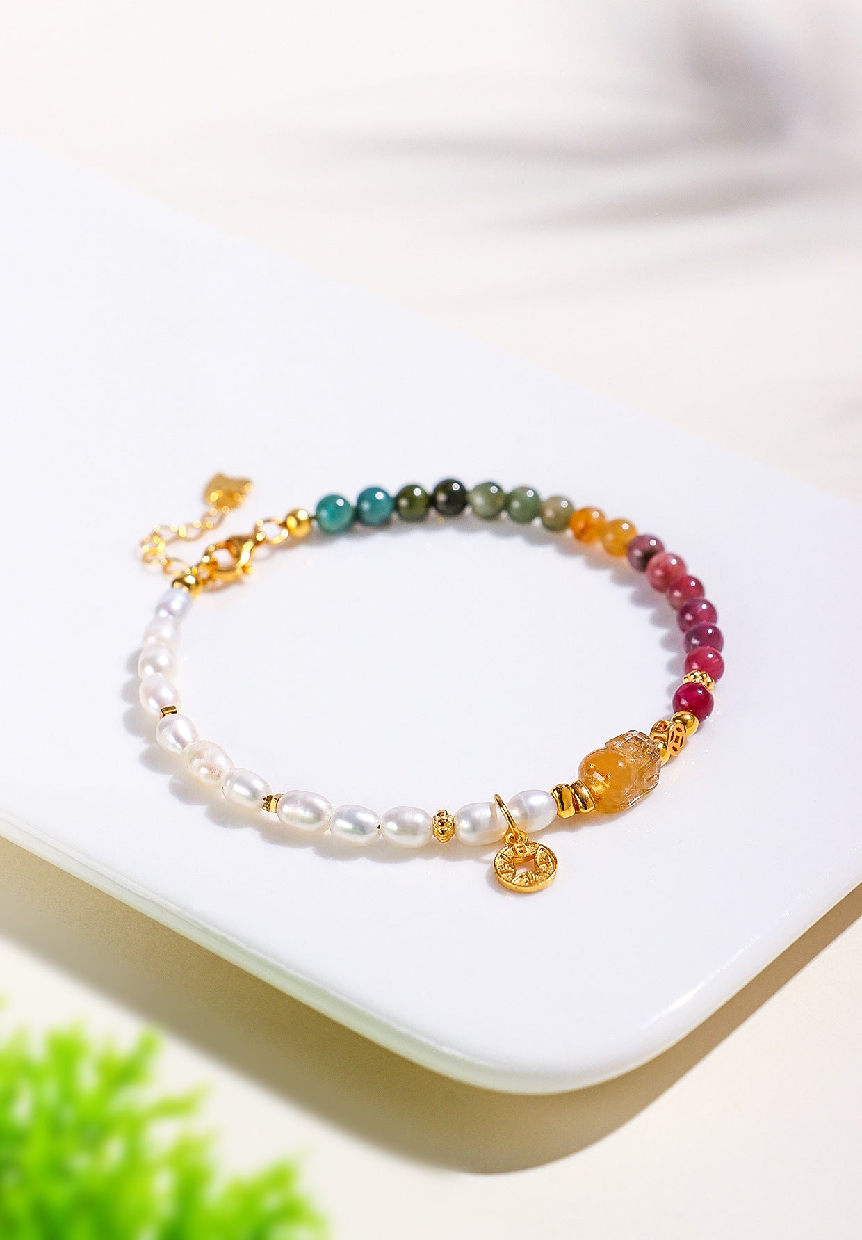 Planderful Fortune's Favor Bracelet – Elegant Freshwater Pearl and Tourmaline Design