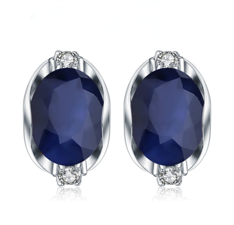 Natural Gemstone Fashion Oval Shape Silver Studs Earrings for Women