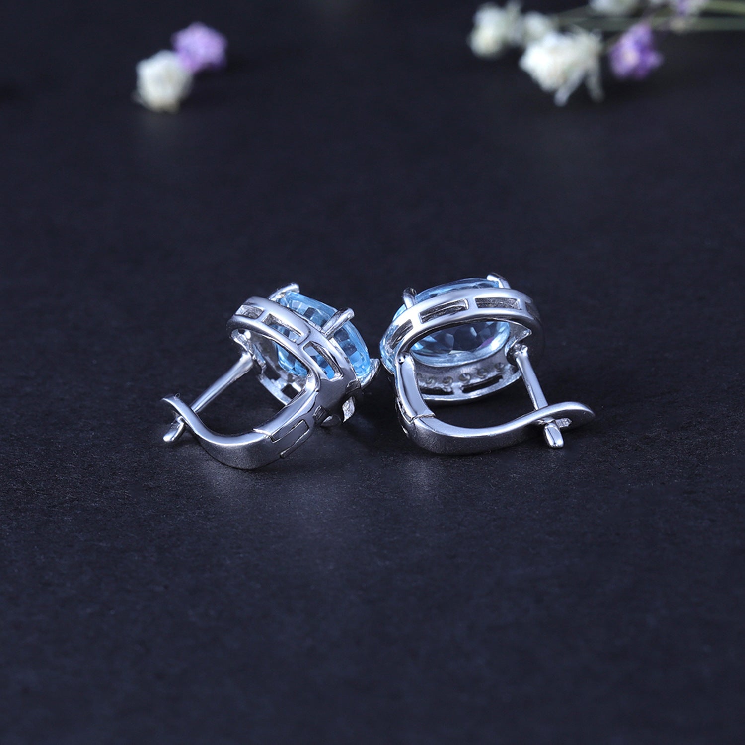 Natural Topaz Soleste Halo Oval Silver Studs for Women