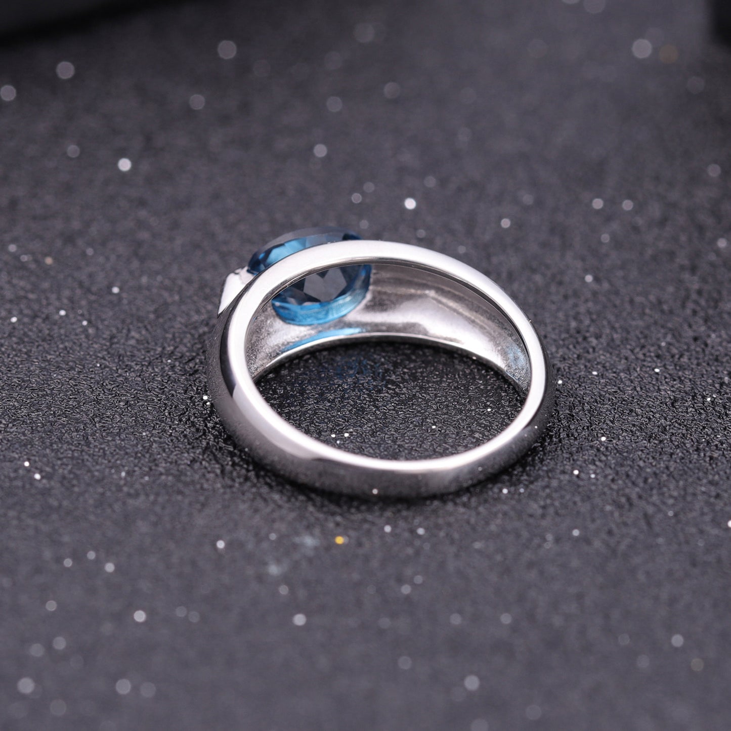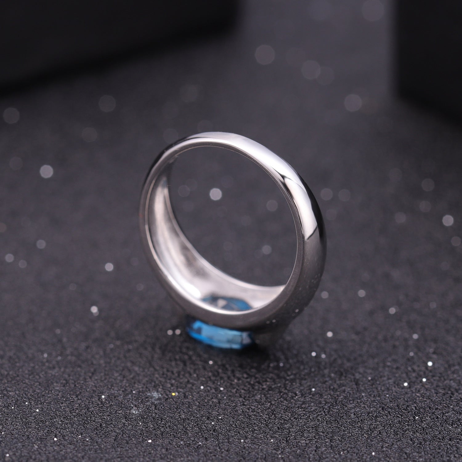 This classic sterling silver ring is the perfect choice for a timeless and elegant accessory. Set with a beautiful oval-cut natural blue topaz, this ring adds a stylish touch to any look. Crafted with a wide ring arm for added comfort, this classic piece will be a timeless addition to your jewelry collection.