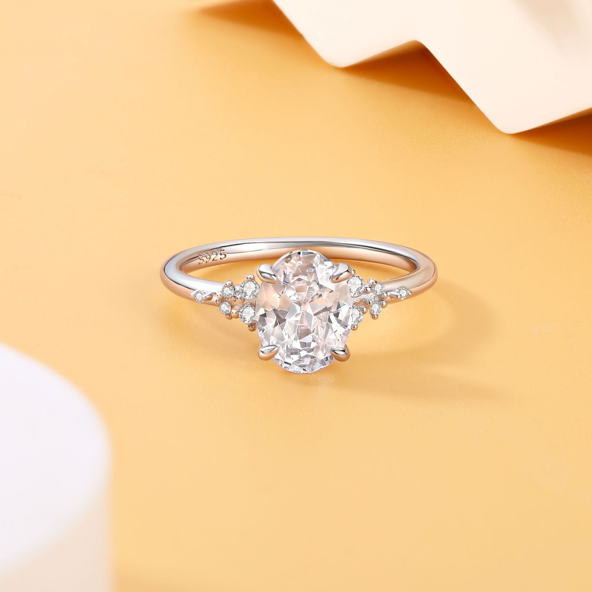 Planderful Sterling Silver Zircon Ring 7x9 Oval 2Ct Elegant Women Everyday Genie Luxury Jewelry