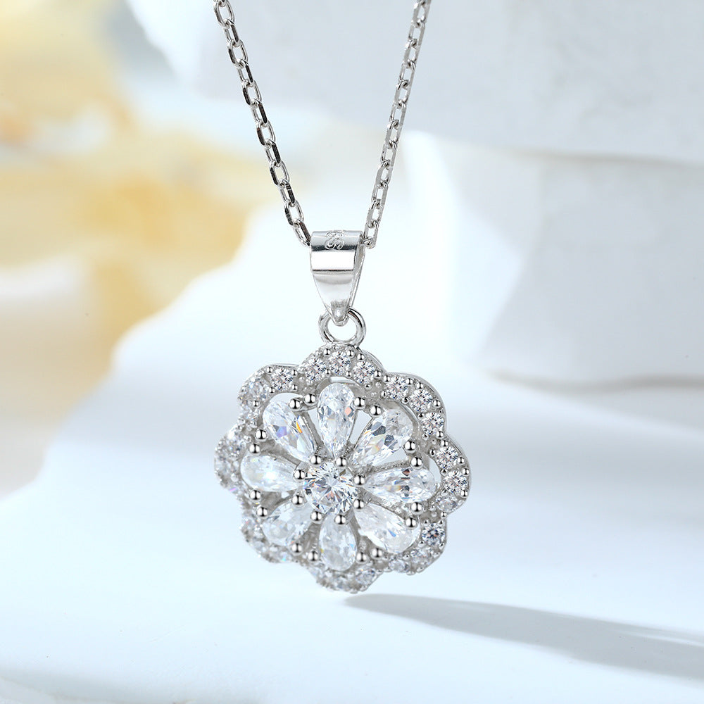 Full Zircon Flower Pendant Sterling Silver Necklace