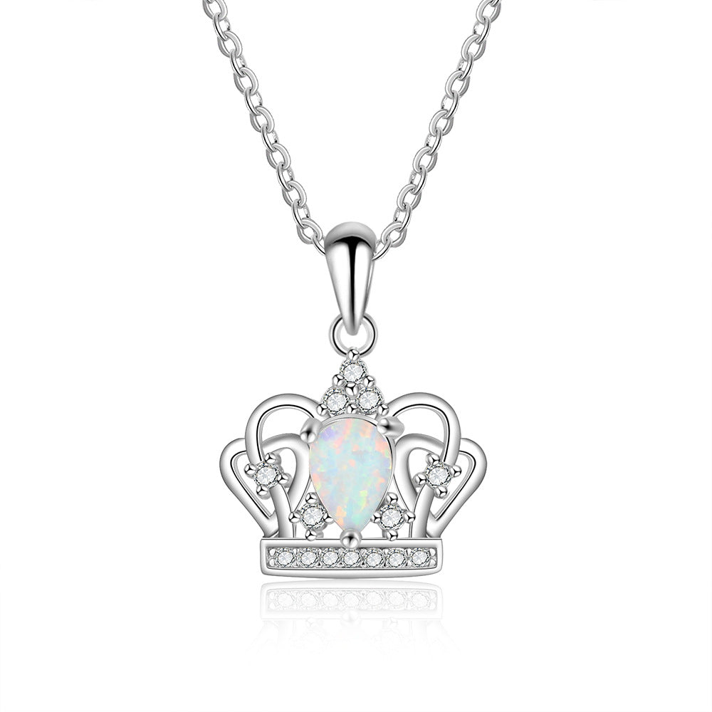 Zircon Crown Pendant Pear Shape Opal Sterling Silver Necklace