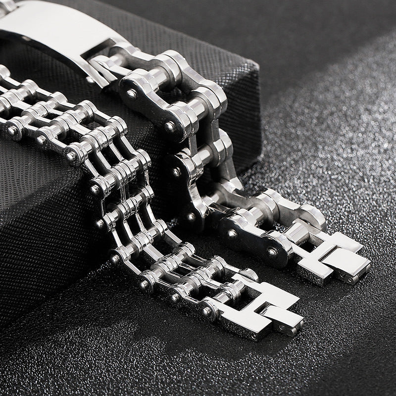 Introducing our new models, the epitome of European and American fashion with a touch of simplicity and personality. This domineering punk wind locomotive titanium steel men's bracelet is the perfect gift for men who appreciate style and quality.