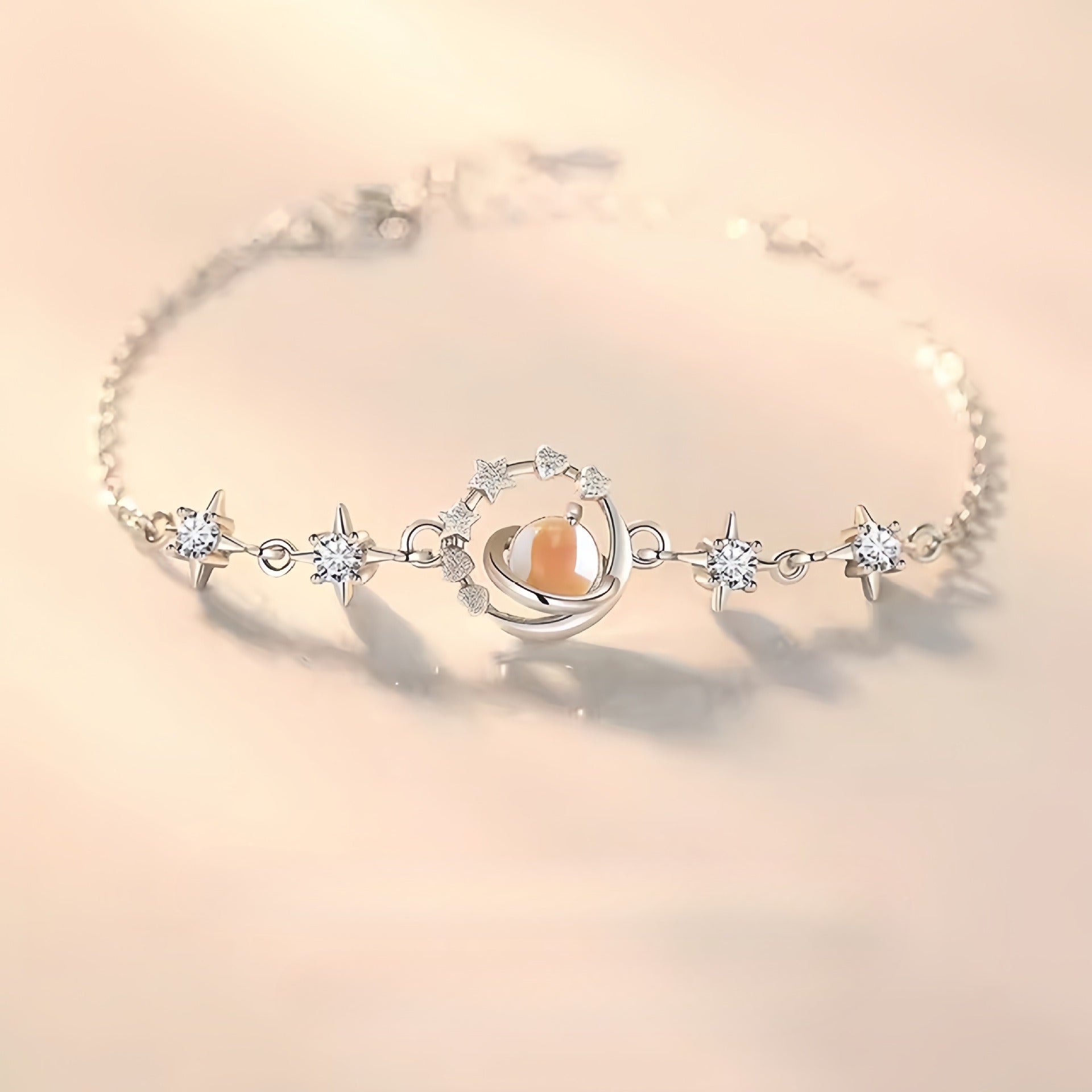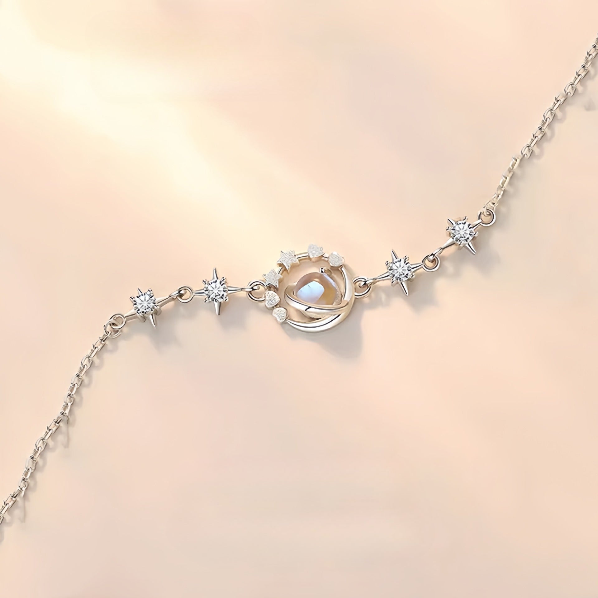 Planderful S925 Sterling Silver Pluto And Charon Bracelet For Women Gift For Girlfriend Exquisite Moonstone Zircon