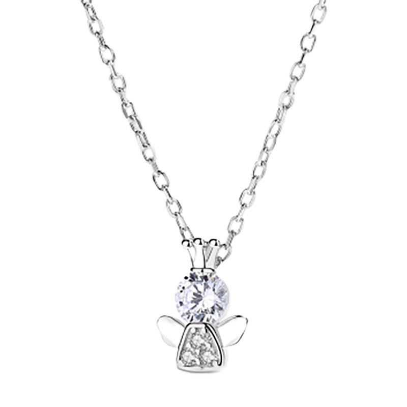 Zircon Crown Angel Silver Necklace for Women