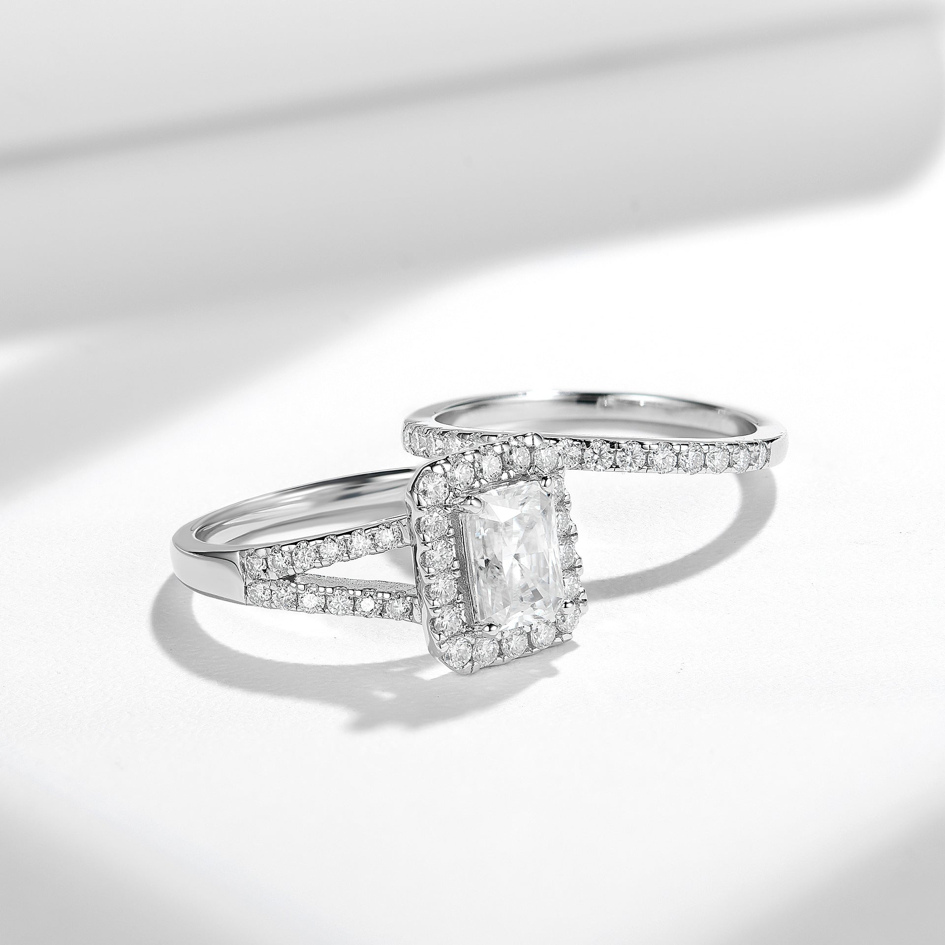The ring features a captivating 5 * 7mm Redeen mozzarella diamond, which reflects light beautifully. This moissanite gem is not only a stunning centerpiece but also a symbol of everlasting love. Its D/VVS clarity guarantees exceptional brilliance, making it an ideal choice for your engagement or special occasions.