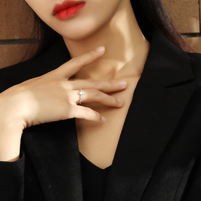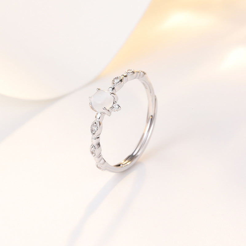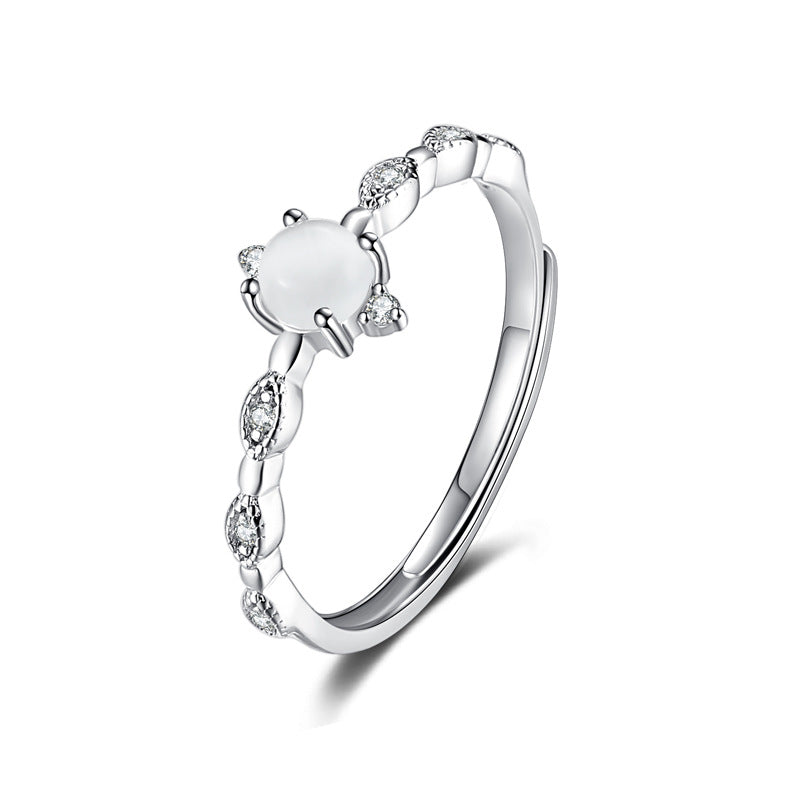 Four Prongs Round Opal Stone with Marquise Zircon Silver Ring for Women