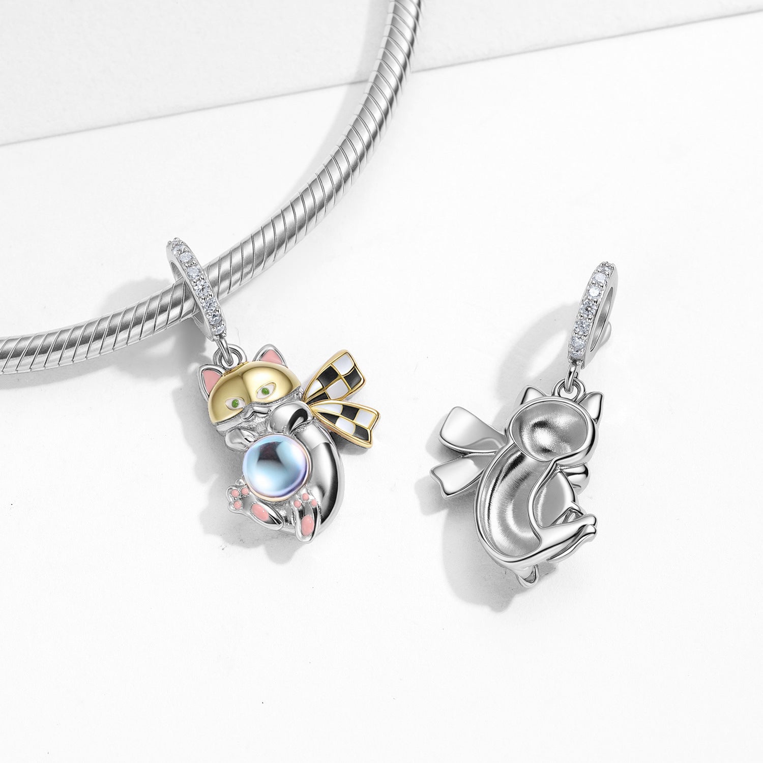 Embodying a playful yet refined charm, this pendant instantly elevates any look—from casual denim to sleek eveningwear. The moonstone’s adularescent glow shifts with the light, bringing a touch of mystique and movement to your neckline. The beaded monster cat motif adds a conversation-starting character while the S925 silver base and 14k gold plating deliver a timeless, premium finish. Perfect as a meaningful gift for gemstone lovers or anyone who adores whimsical, statement jewelry.