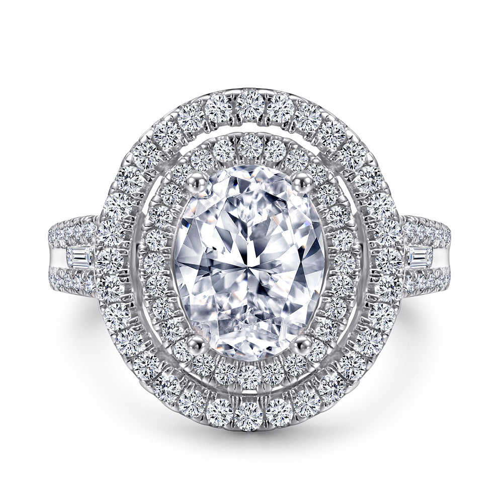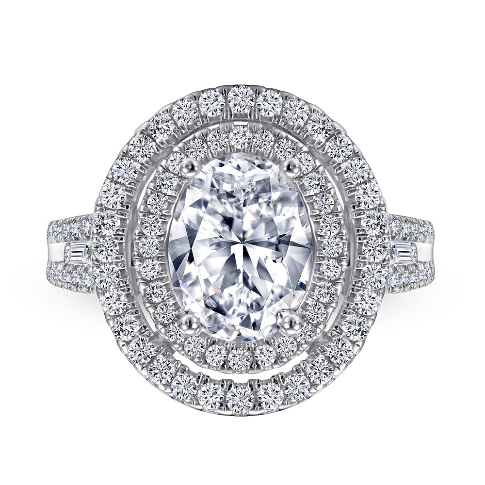(2.0CT) Oval Zircon Double Soleste Halo Silver Ring for Women