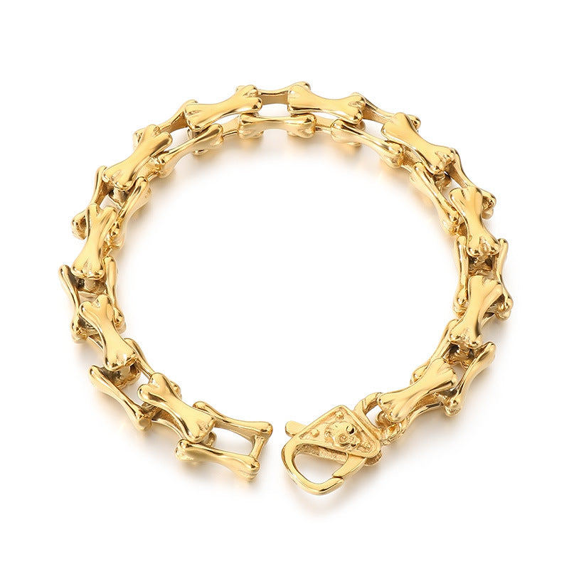 Planderful personalized skull buckle bracelet for men brings a bold punk aesthetic to your everyday look. This rugged, electroplated bone-splicing chain bracelet is crafted as a durable metal piece designed for fearless style and lasting wear.