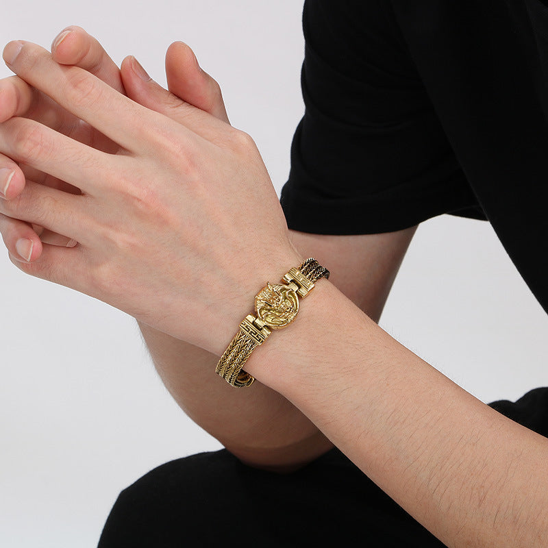 Unleash your inner strength and style with our Punk Personality Dragon Year Jewelry. This retro-inspired bracelet combines a fierce design with high-quality materials, making it the perfect accessory for any modern man.