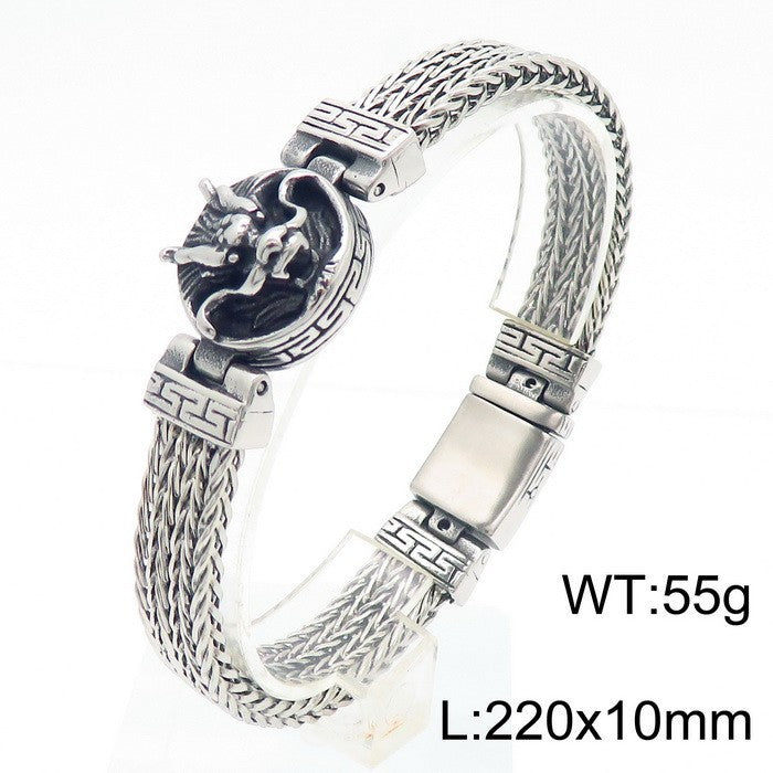 Dragon Year Punk Bracelet for Men - Retro Titanium Steel Jewelry with Unique Dragon Motif
