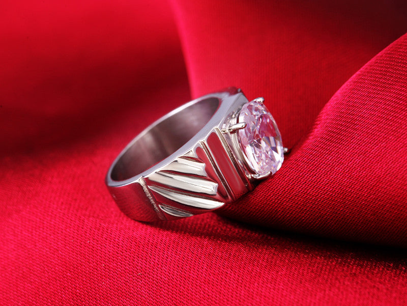 Introducing the Zircon Titanium Steel Men's Wedding Ring from Planderful Collection, a stylish and durable accessory for the modern gentleman.