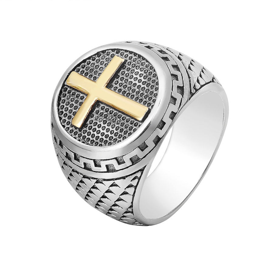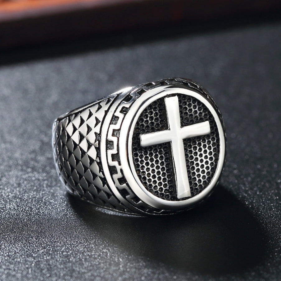 This Vintage Latin Cross Round Titanium Steel Ring for Men is perfect for any man looking to express his faith without sacrificing style. Crafted with a round disk decorated with a Latin Cross in the center, this ring is sure to make a statement. Crafted from titanium steel for long-lasting durability and comfort.