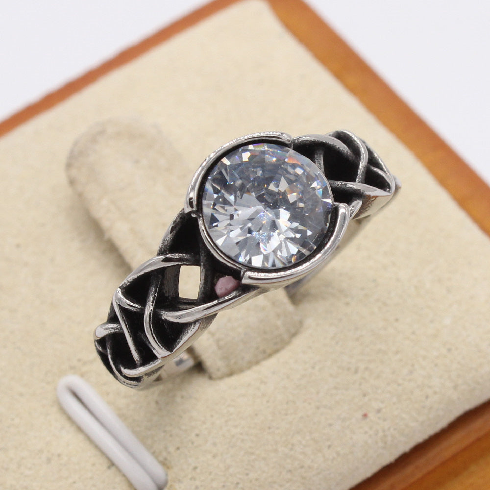 Upgrade Your Style with the Vintage Viking Celtic Round Zircon Titanium Steel Ring