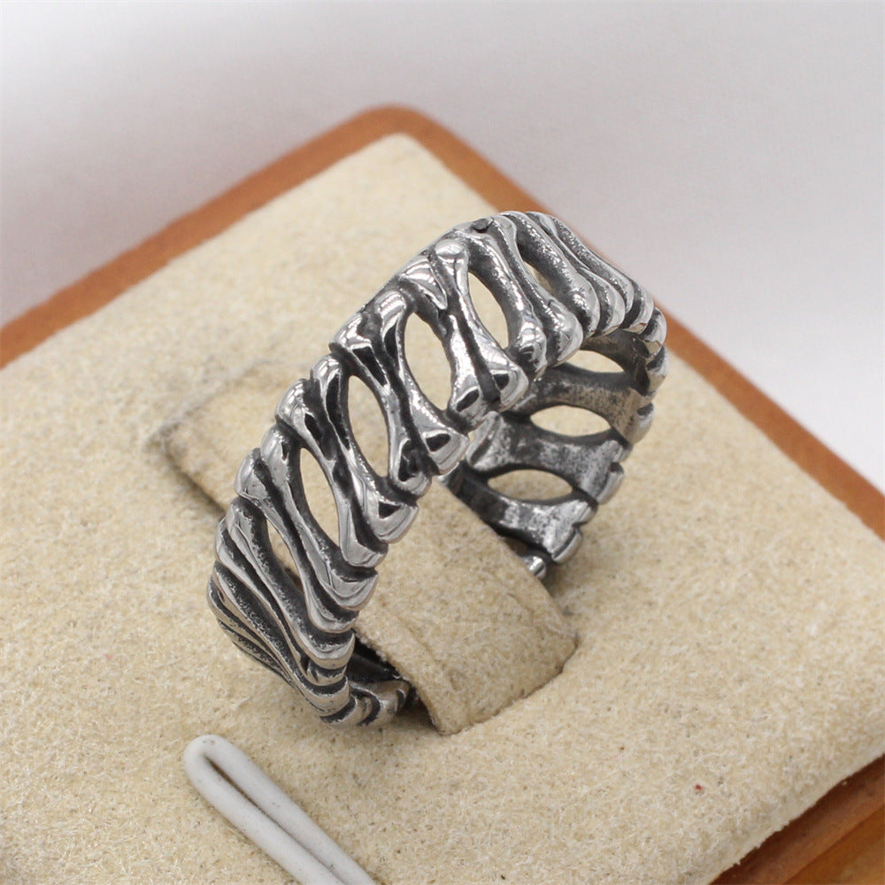 Planderful Jewelry Titanium Ring For Men Retro Bone Design In Stainless Steel Gift Ready