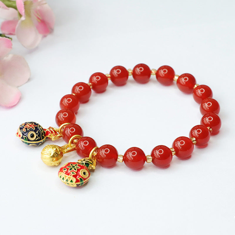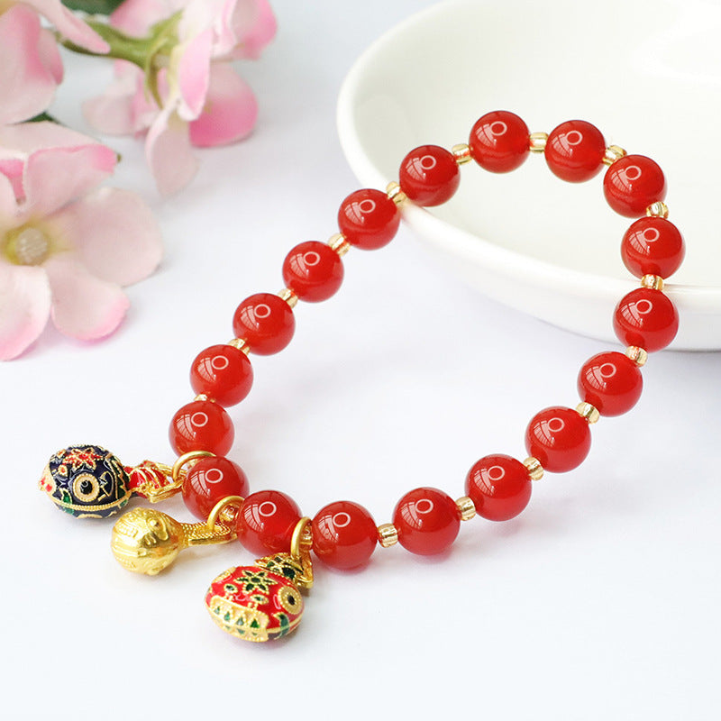 Enamel Swallow Gold Beast Red Agate Bracelet
