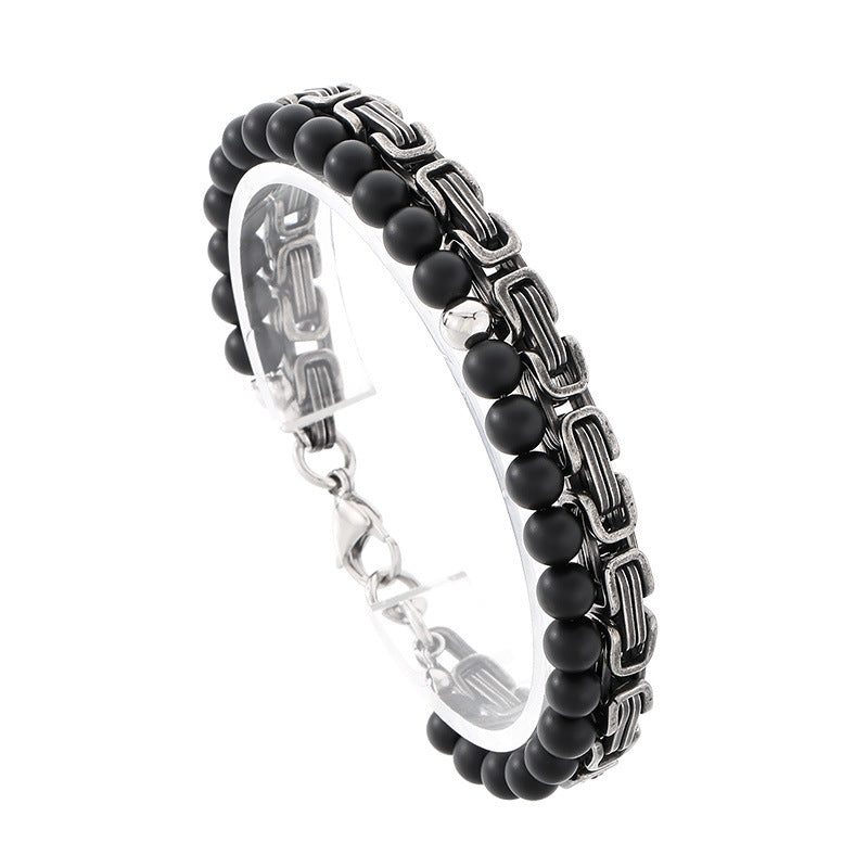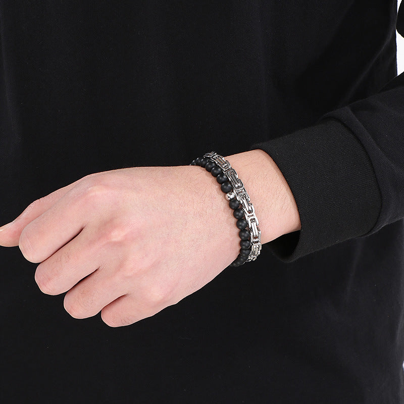 Meet the Planderful retro handmade double-layer bracelet—an edgy, standout piece designed for men who embrace bold fashion. Part of the Everyday Genie collection, this stacked bracelet blends punk aesthetics with refined craftsmanship, featuring a commanding emperor chain silhouette, a black agate accent, and durable titanium steel hardware.