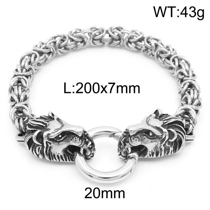 Handcrafted Retro Zodiac Snake Head Bracelet with Skull Lion O-Chain in Titanium Steel for Men