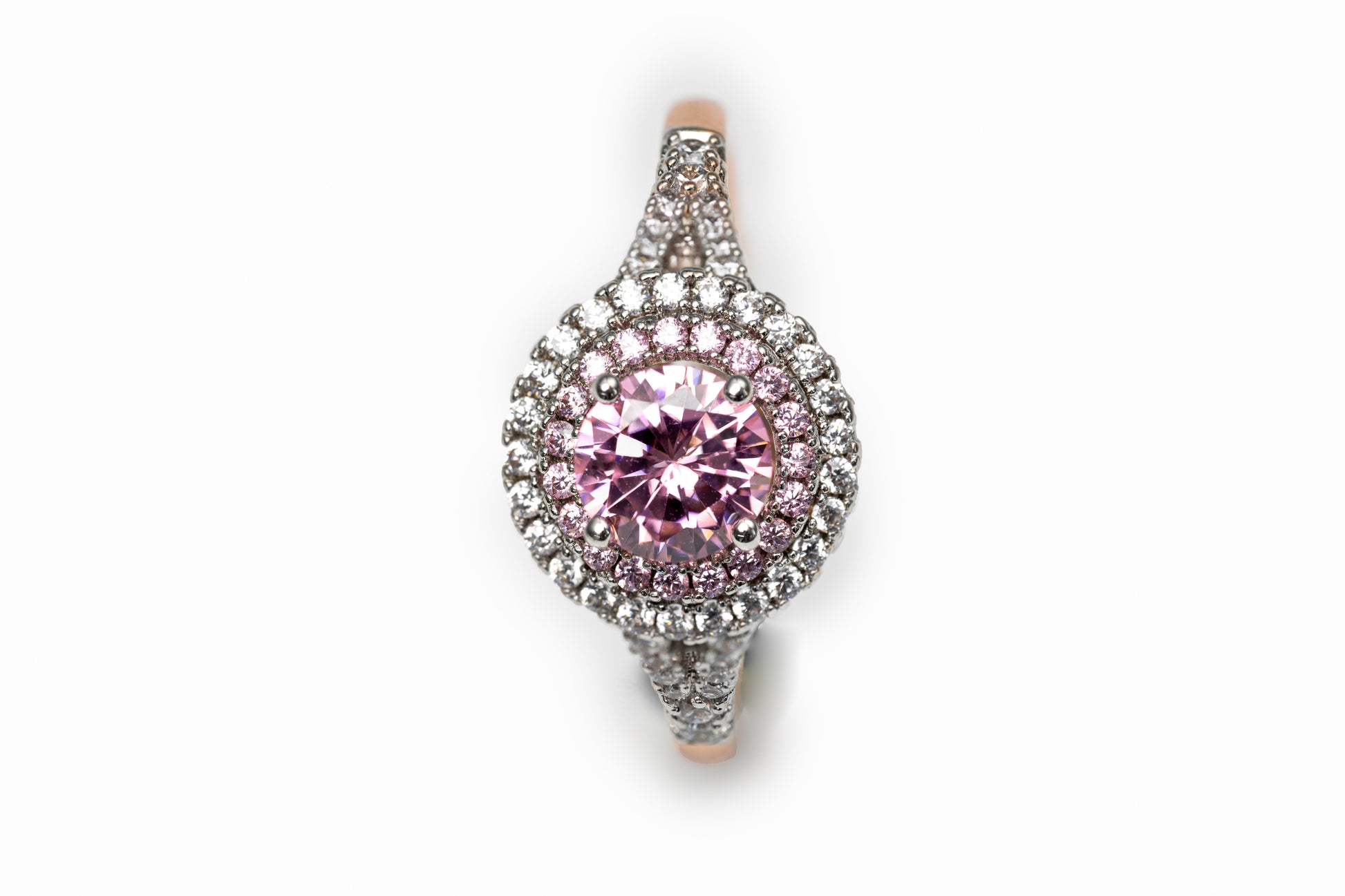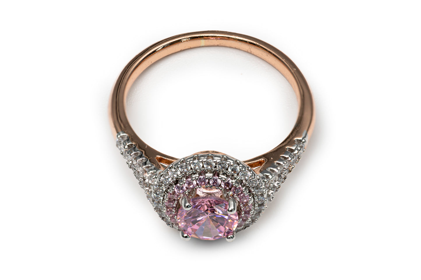 Double Soleste Halo Round Cut Pink Zircon Ring