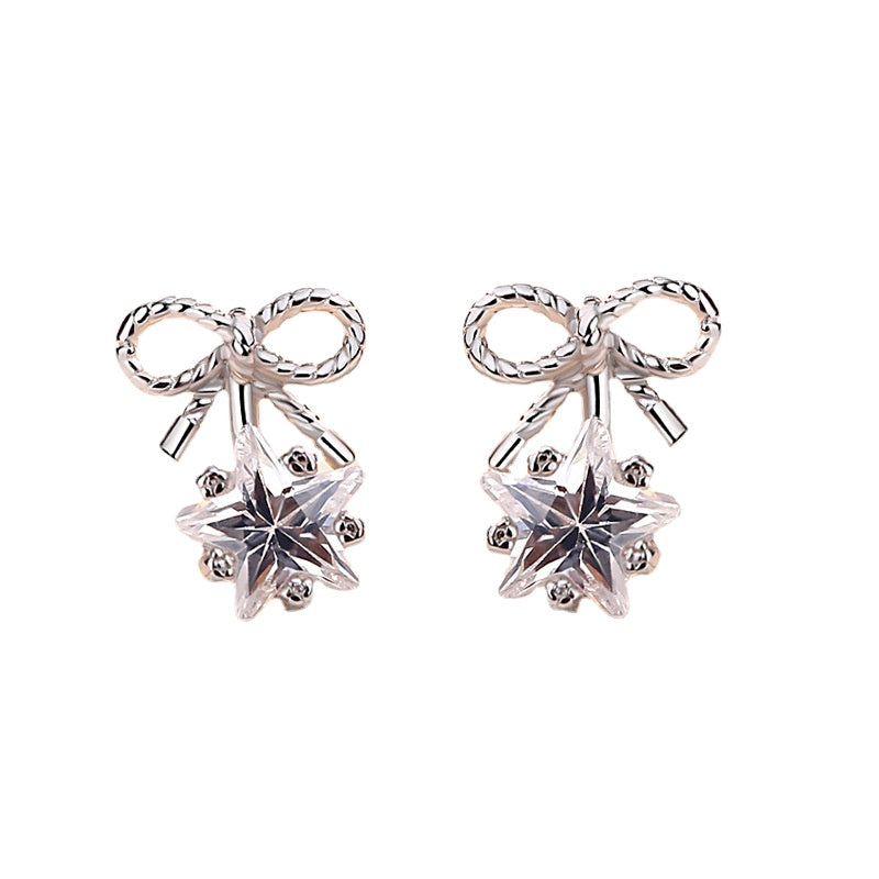 This studs earring is a cute accessory with a theme of bows and stars, fresh and dreamy. The bow symbolizes agility and freedom, presenting a lightweight aesthetic. There is a white zircon in the shape of a star below the bow, adding a sparkling atmosphere. Earrings made of pure silver are comfortable to wear.