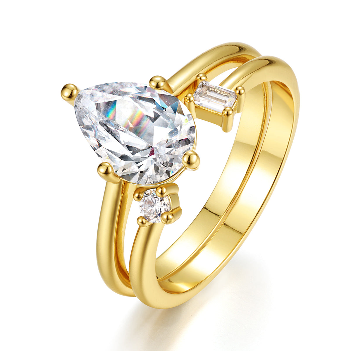 Don’t miss out on the chance to own this unique piece! Add the S925 silver plated 18K gold Ring with 2.5 Carat Water droplet moissanite women's two-pieces ring set to your jewelry collection today and let your elegance shine!