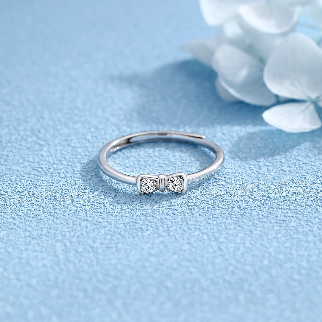 Planderful S925 Sterling Silver Bow Ring For Women Adjustable Niche Design Luxury Jewelry