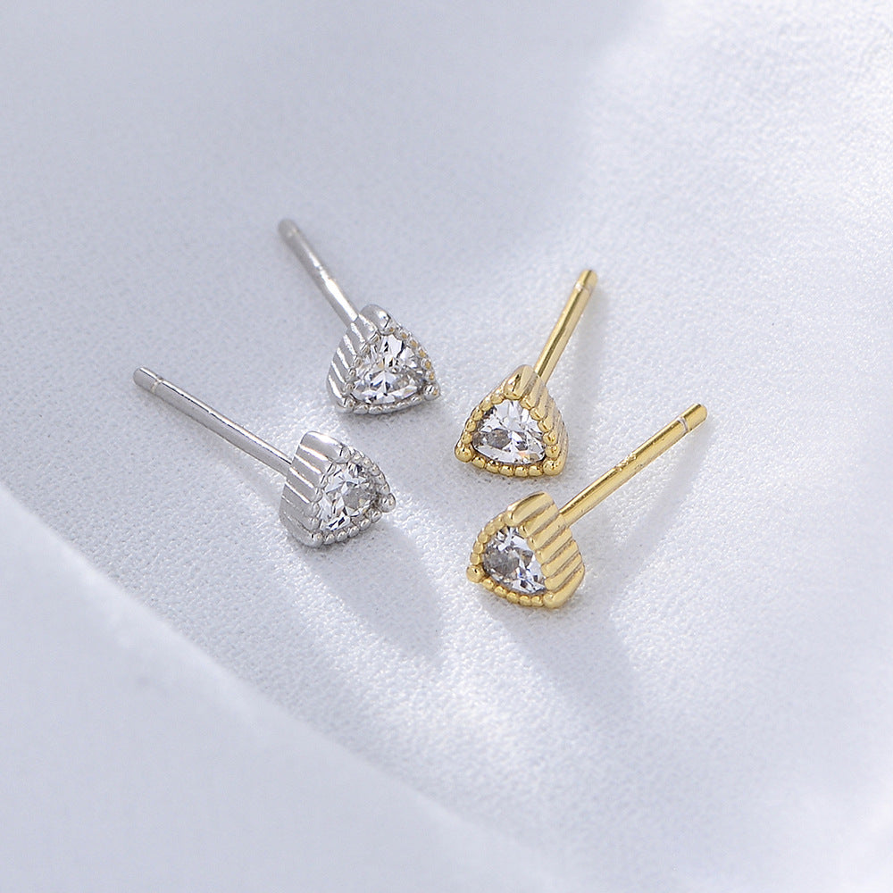 Mini Triangular Zircon Silver Studs Earrings for Women