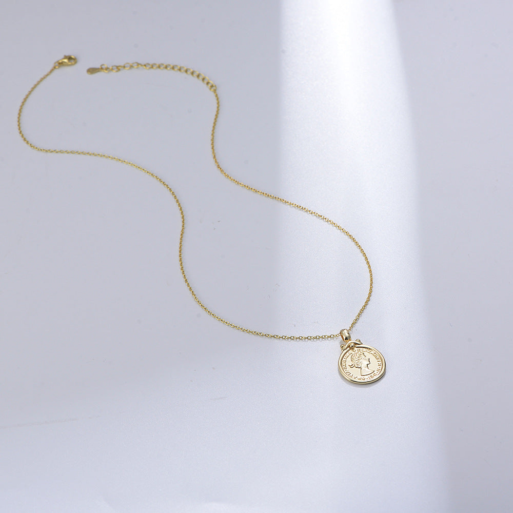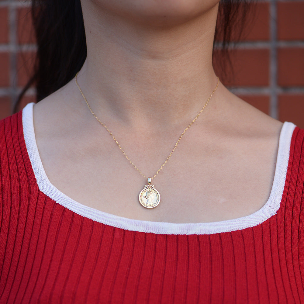 Elizabeth Portrait Coin Relief Pendant Silver Necklace for Women