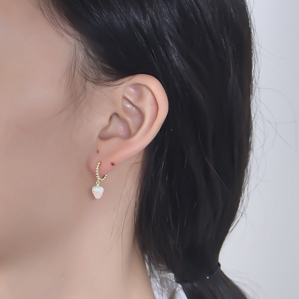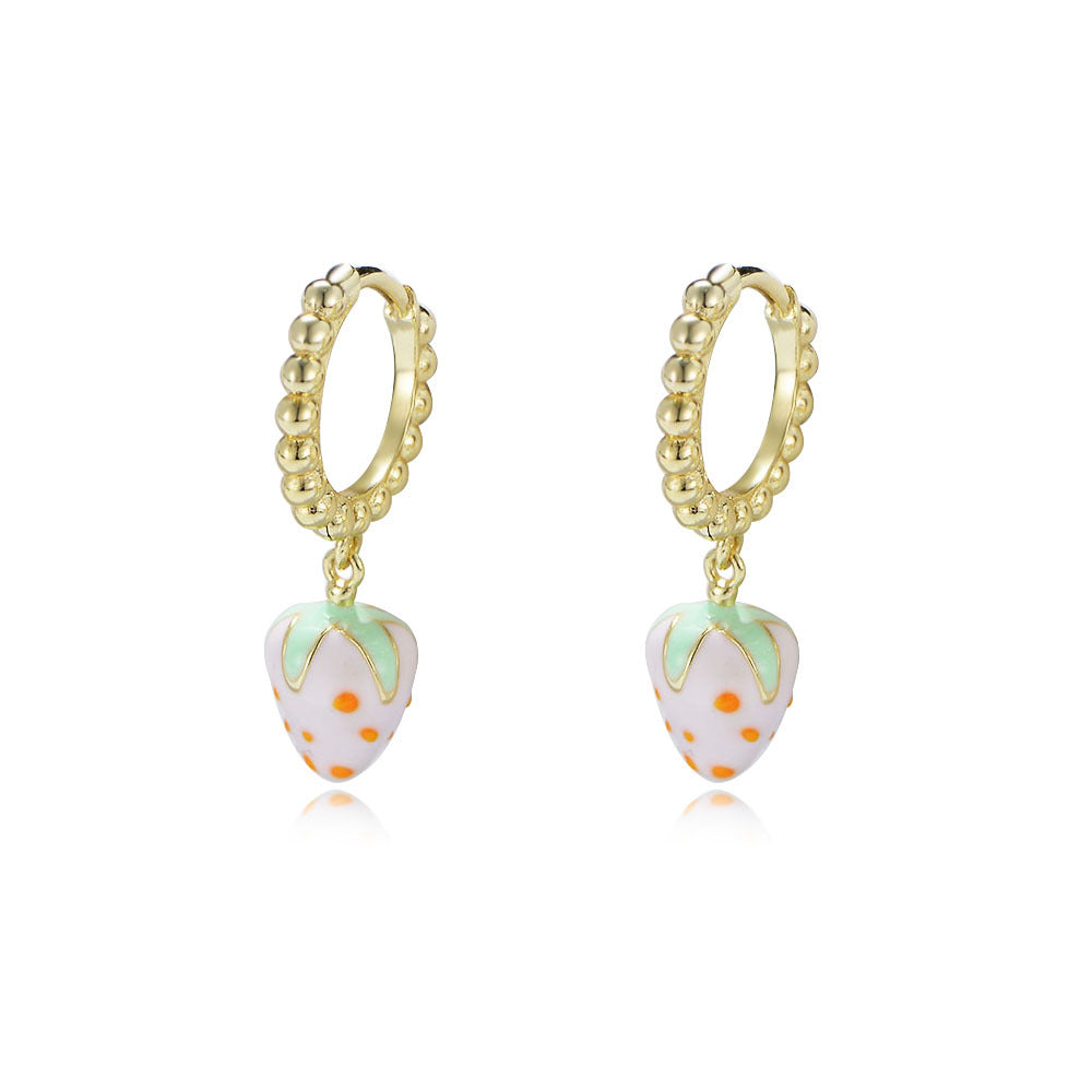 Enamel Pink Strawberry Silver Drop Earrings for Women