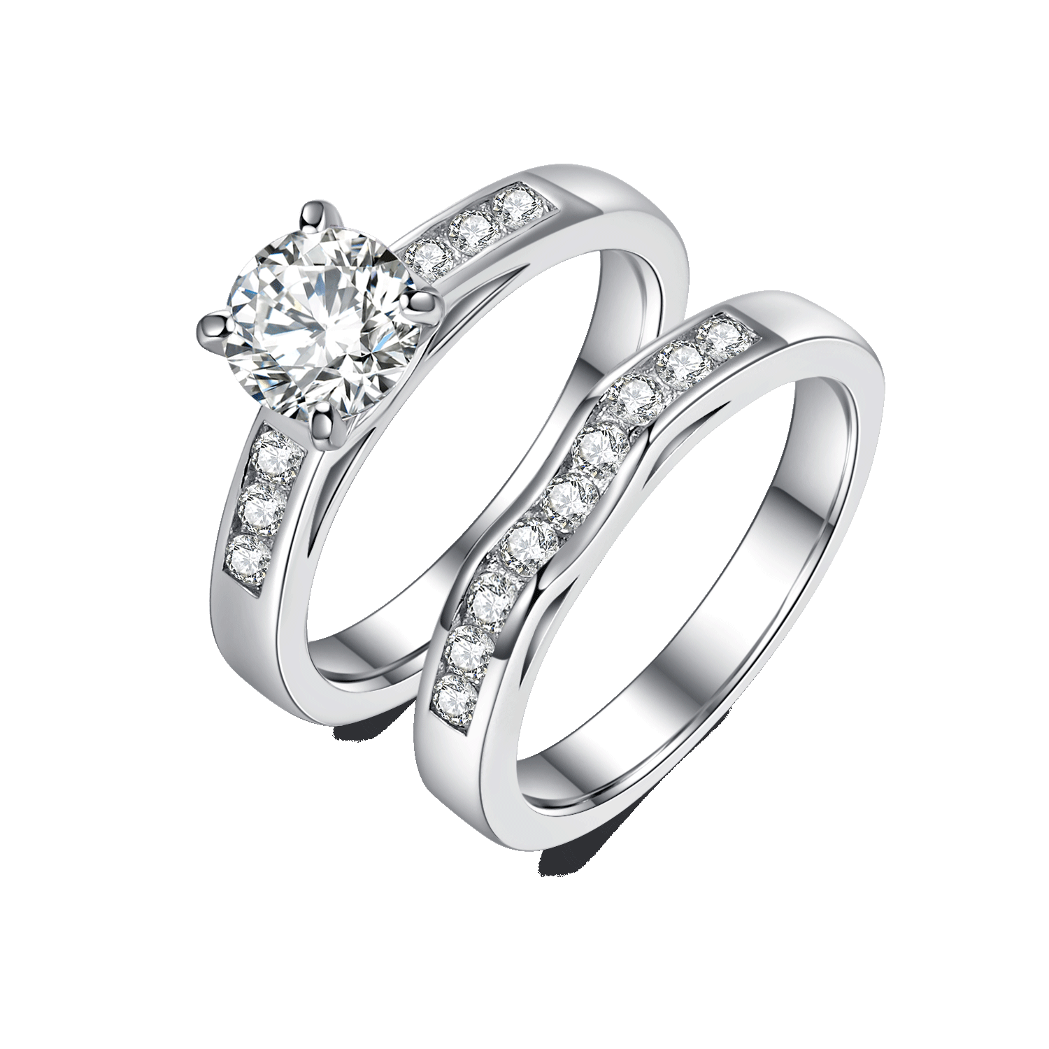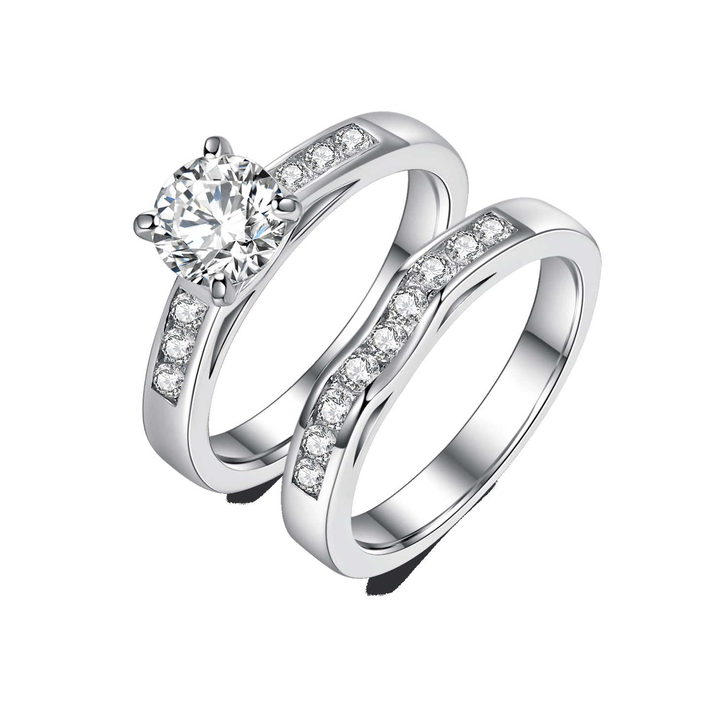 Round Cut Moissanite Ring and Semi Eternity Ring Pack