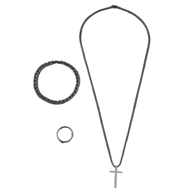 Get ready to elevate your style with the European and American cross set ornament chain from the exclusive Planderful Collection. This versatile set includes a necklace, bracelet, and ring needle, all crafted with high-quality steel for durability and style.
