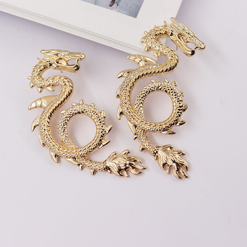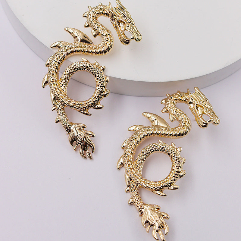 Zodiac Dragon Stud Earrings with Exaggerated Design and Cross-border Charm