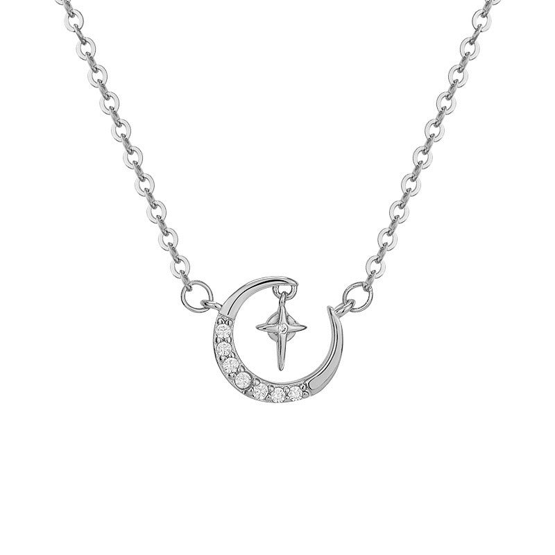 Zircon Crescent Moon with Starlignt Pendant Silver Necklace for Women
