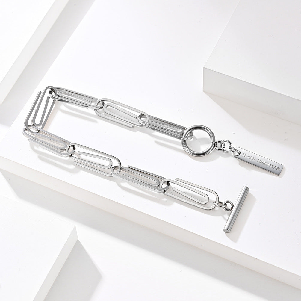 Discover the Spring and summer new Ins tide brand simple wind titanium steel pin bracelet, literary and artistic fan student hip-hop personalized couple jewelry for men. This stunning bracelet combines modern design with classic elements, making it a versatile accessory for any occasion. Crafted from durable titanium steel, it offers both style and longevity, ensuring it withstands the rigors of daily wear while maintaining its elegant appearance.