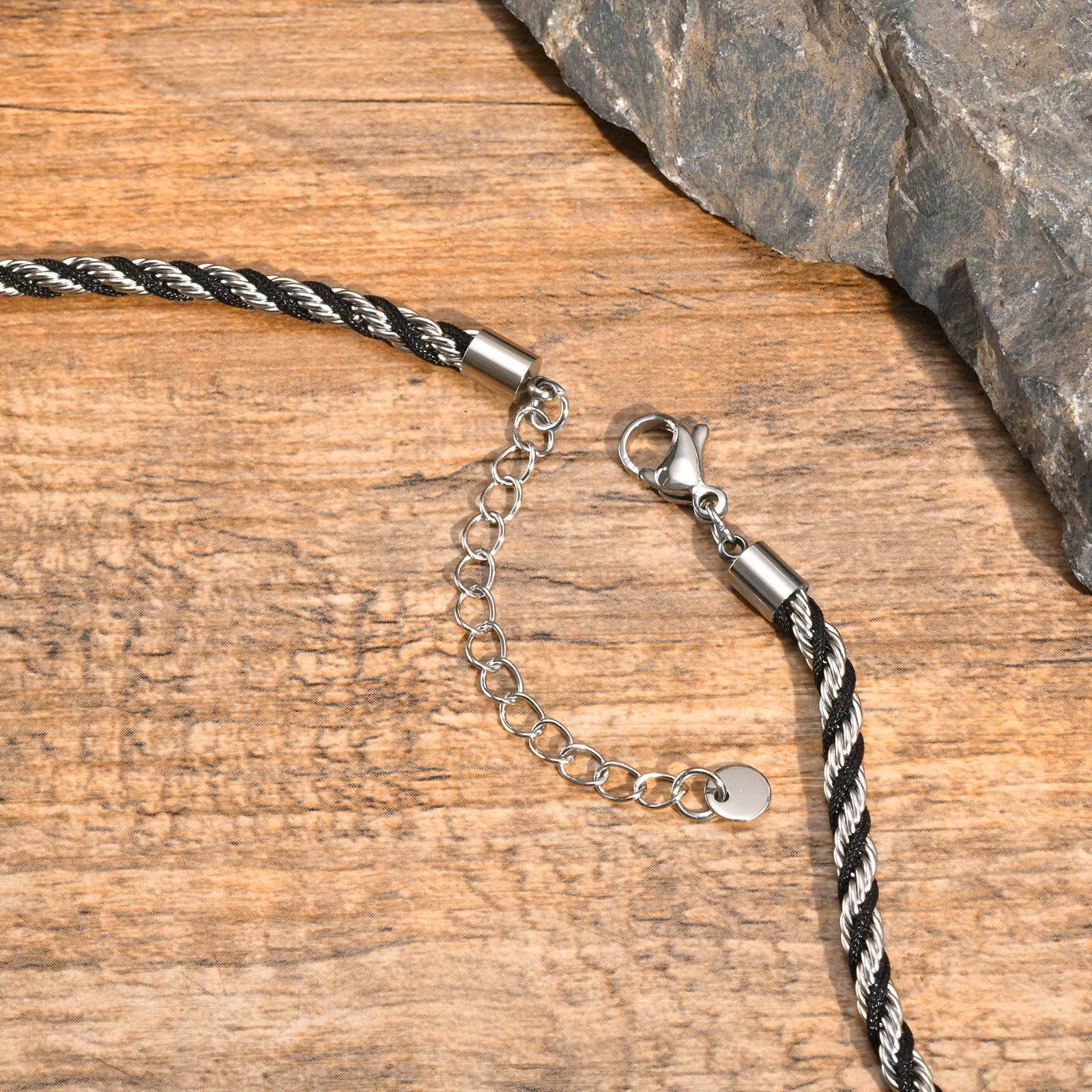 The sturdy stainless steel construction offers durability and tarnish resistance, making this bracelet a dependable accessory for daily wear. The black braided rope twist adds contemporary edge that pairs well with casual outfits or more formal looks, letting you elevate your style with minimal effort. Easy to care for—wipe with a soft cloth to maintain its luster and finish. Designed for men who value simple, dependable style, this bracelet is a versatile addition to any wardrobe.