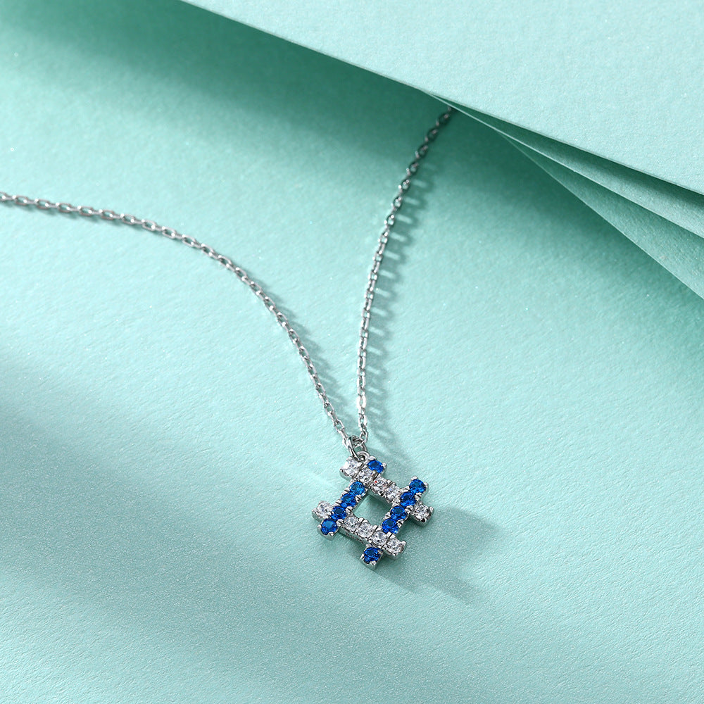 Quadrilateral Square with Blue Zircon Pendant Silver Necklace for Women