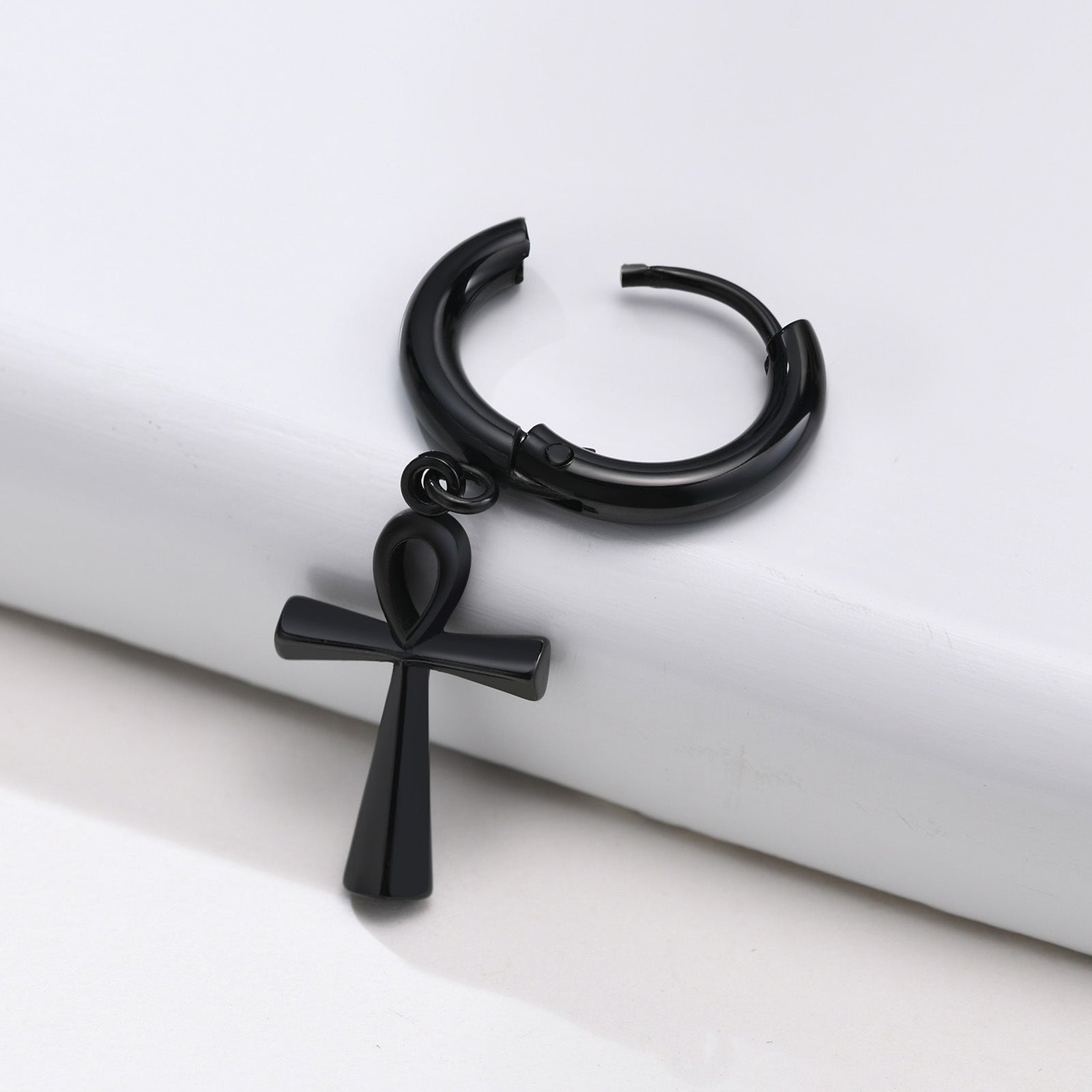 Stainless Steel Anka Cross Black Earrings Men's Fashion