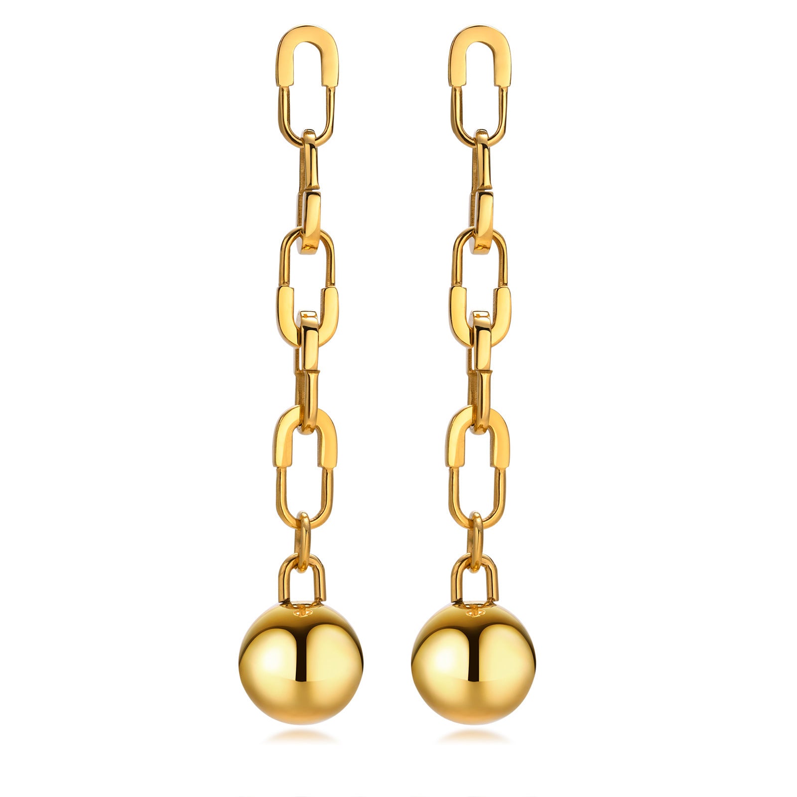 Stainless Steel Bead Chain Earrings Gold Women's Fashion Chic