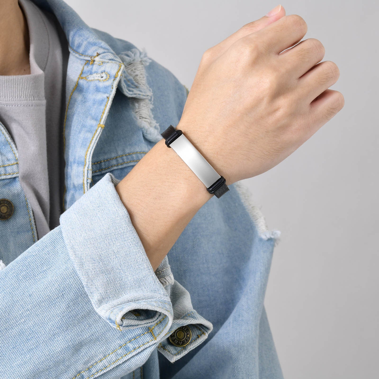 This Stainless steel black curved brand leather bracelet black men's trendy accessories jewelry wholesale, personalized for men is not just a piece of jewelry; it's a statement of style and individuality. The combination of leather and stainless steel ensures that it not only looks great but also withstands the test of time. Whether worn alone or stacked with other accessories, it is the perfect addition to complete any outfit.