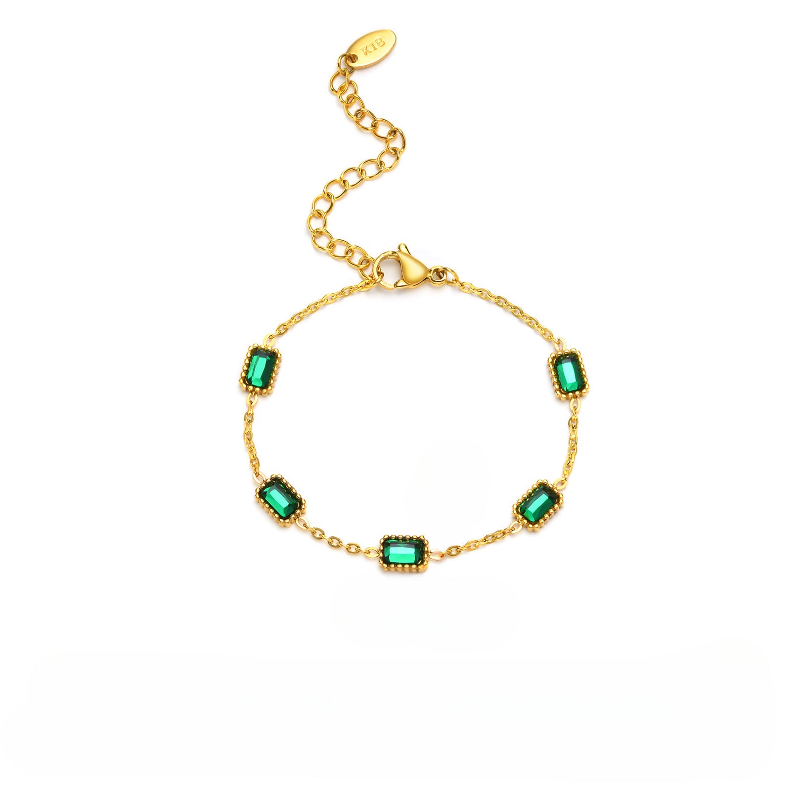 Elevate your jewelry collection with the exquisite Stainless Steel Emerald Zircon Necklace, Stainless Steel Emerald Zircon Bracelet, Jewelry Set Wholesale. This stunning set is designed to bring a touch of elegance and sophistication to any outfit, making it the perfect accessory for both everyday wear and special occasions. Crafted from high-quality titanium steel, this jewelry set not only boasts durability but also a luxurious shine that will turn heads.