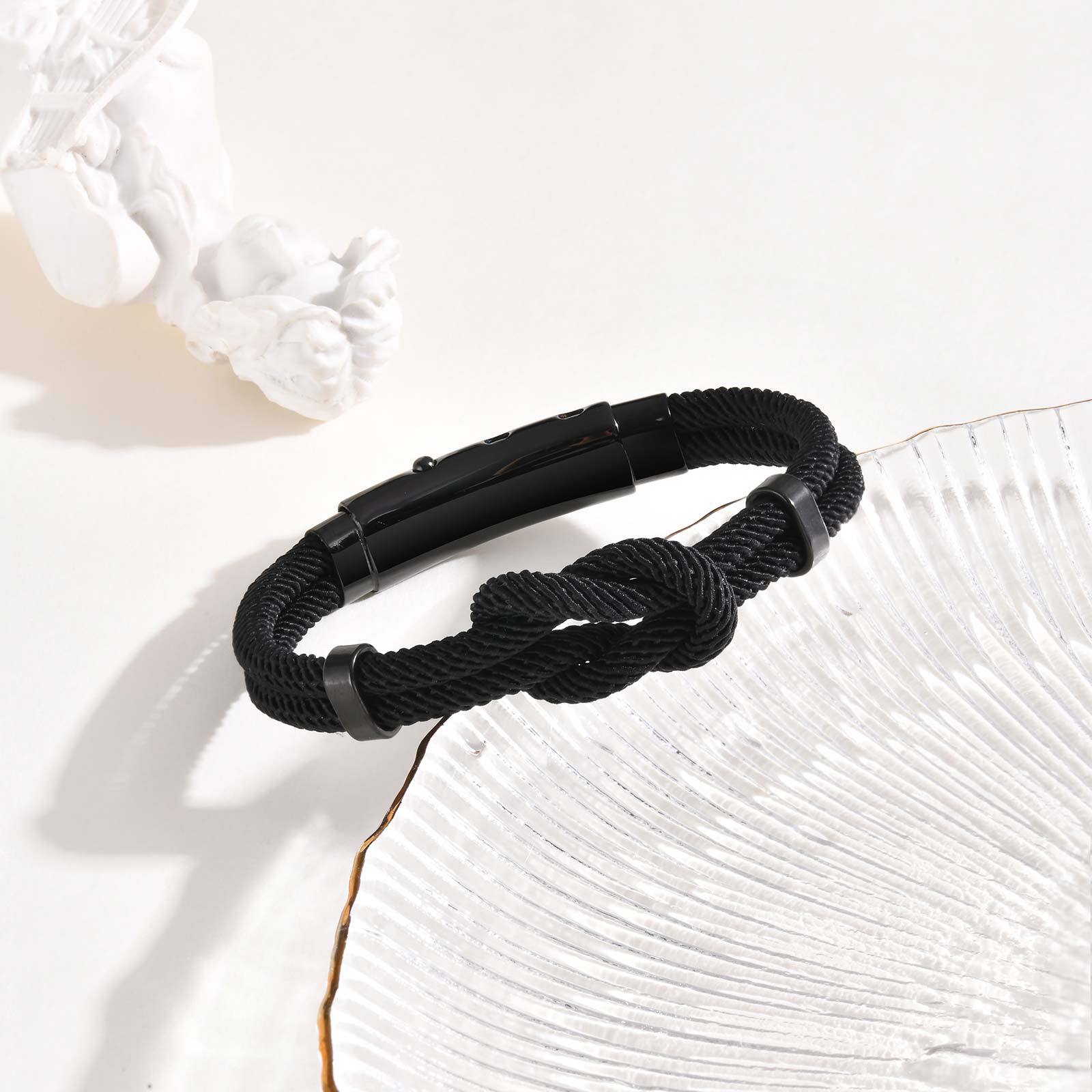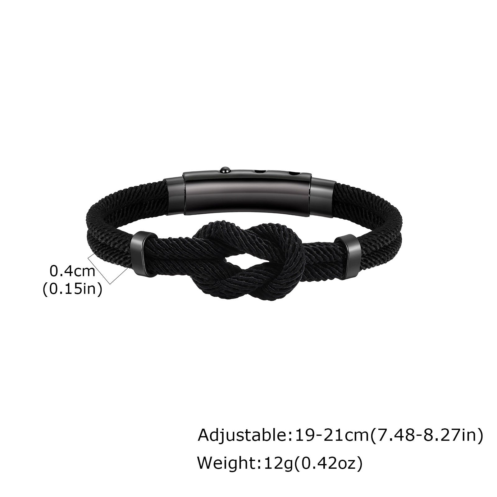 Built to withstand daily wear, the stainless steel construction resists tarnish and maintains a sleek appearance over time. The black infinity emblem adds a meaningful, stylish touch without overpowering other accessories, while the rope concentric knot detail delivers texture and depth. The adjustable buckle ensures a secure fit, making it easy to dress up or down for any occasion.