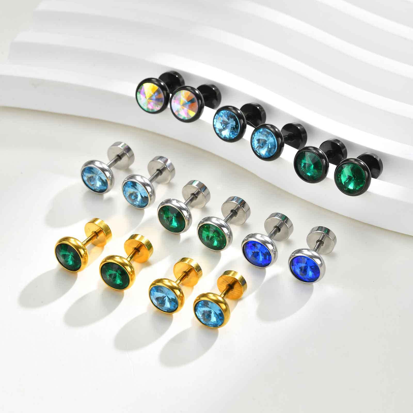 Planderful Stainless Steel White Zircon Stud Earrings Men