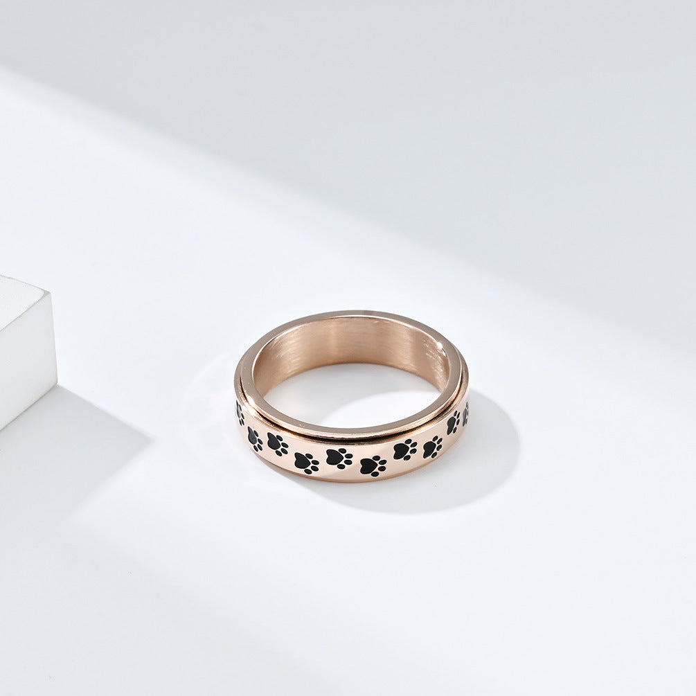 The Sweet and cool Japanese and Korean style cute puppy palm print rotatable titanium steel ring is not just a piece of jewelry, it's a statement. Its unique design is perfect for fashion-forward individuals looking to stand out. Plus, the titanium steel material is hypoallergenic and resistant to tarnish, ensuring that your ring stays beautiful over time.
