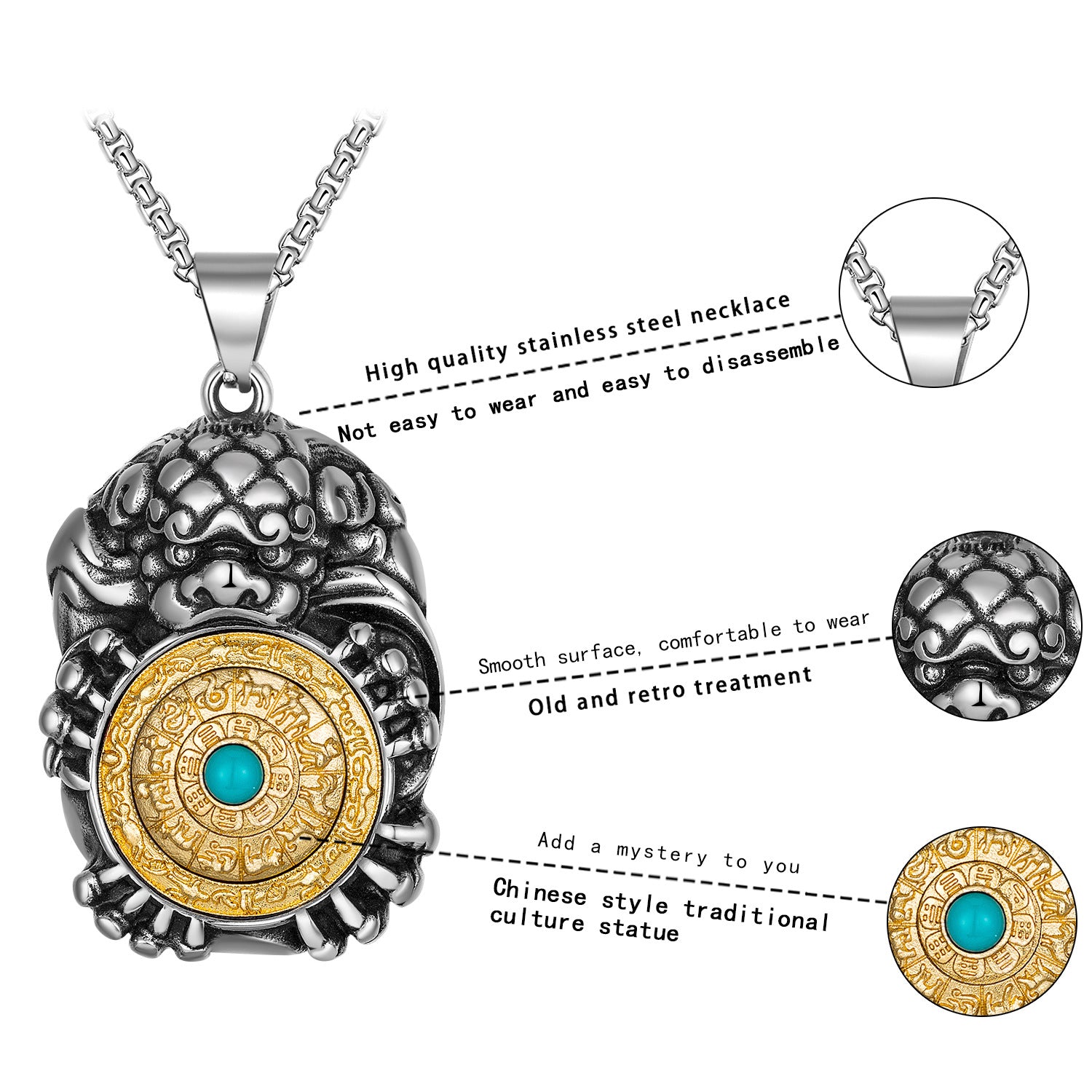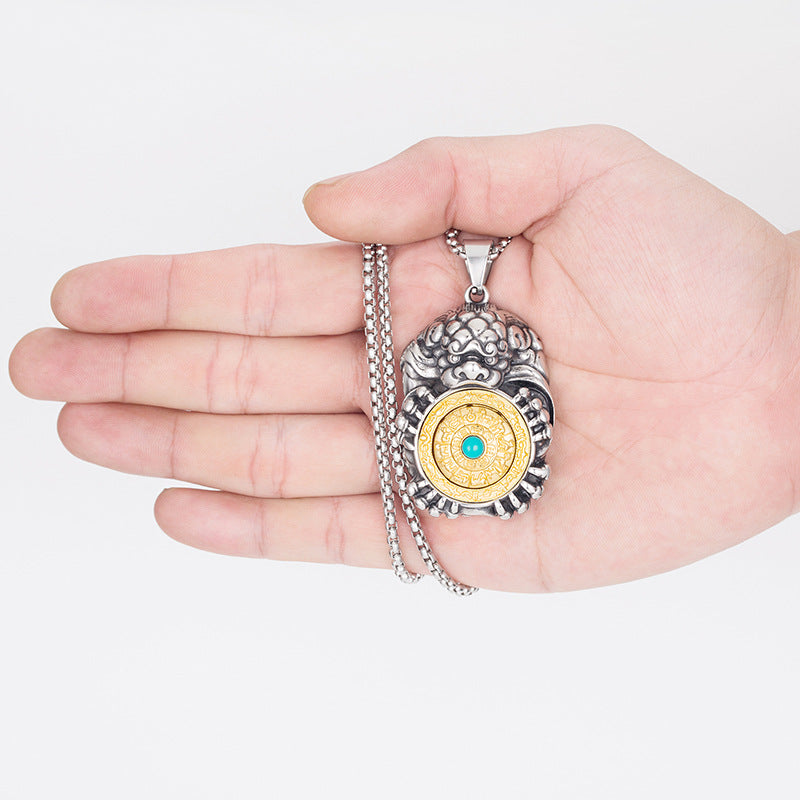 Titanium steel Pixiu pendant | Jiugong Gossip Tag & Twelve Zodiac Hexagram — Stainless Steel Men’s Rotatable Necklace