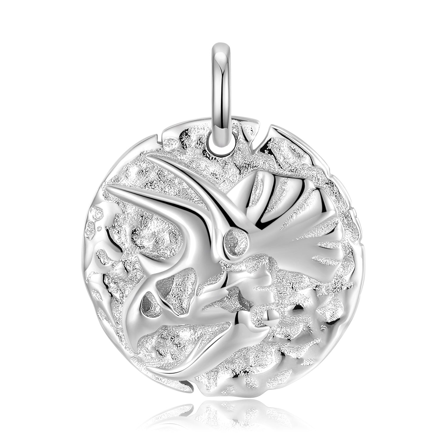 Triangle Dinosaur Bone Embossed Round Disc Pendant Silver Necklace