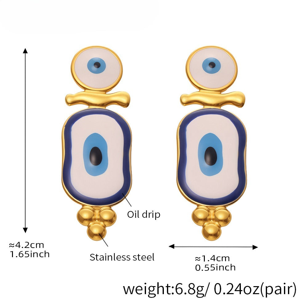 Discover the Turkey Blue Eyes Enamel Color Glaze Devil's Eye Earrings from Planderful — a bold, stainless steel fashion piece that blends protection symbolism with contemporary style. The iconic Nazar (devil's eye) design is brought to life with a vivid Turkey blue enamel glaze, catching light and attention with every move.