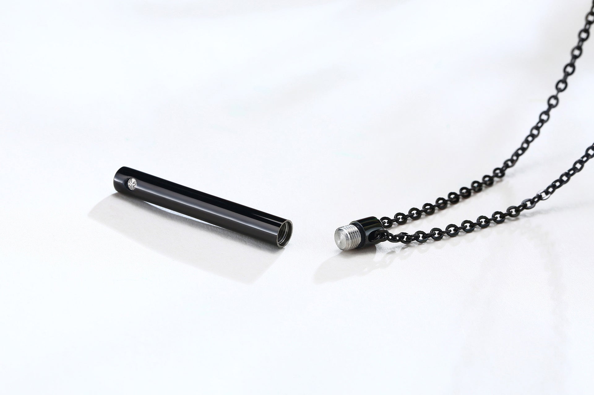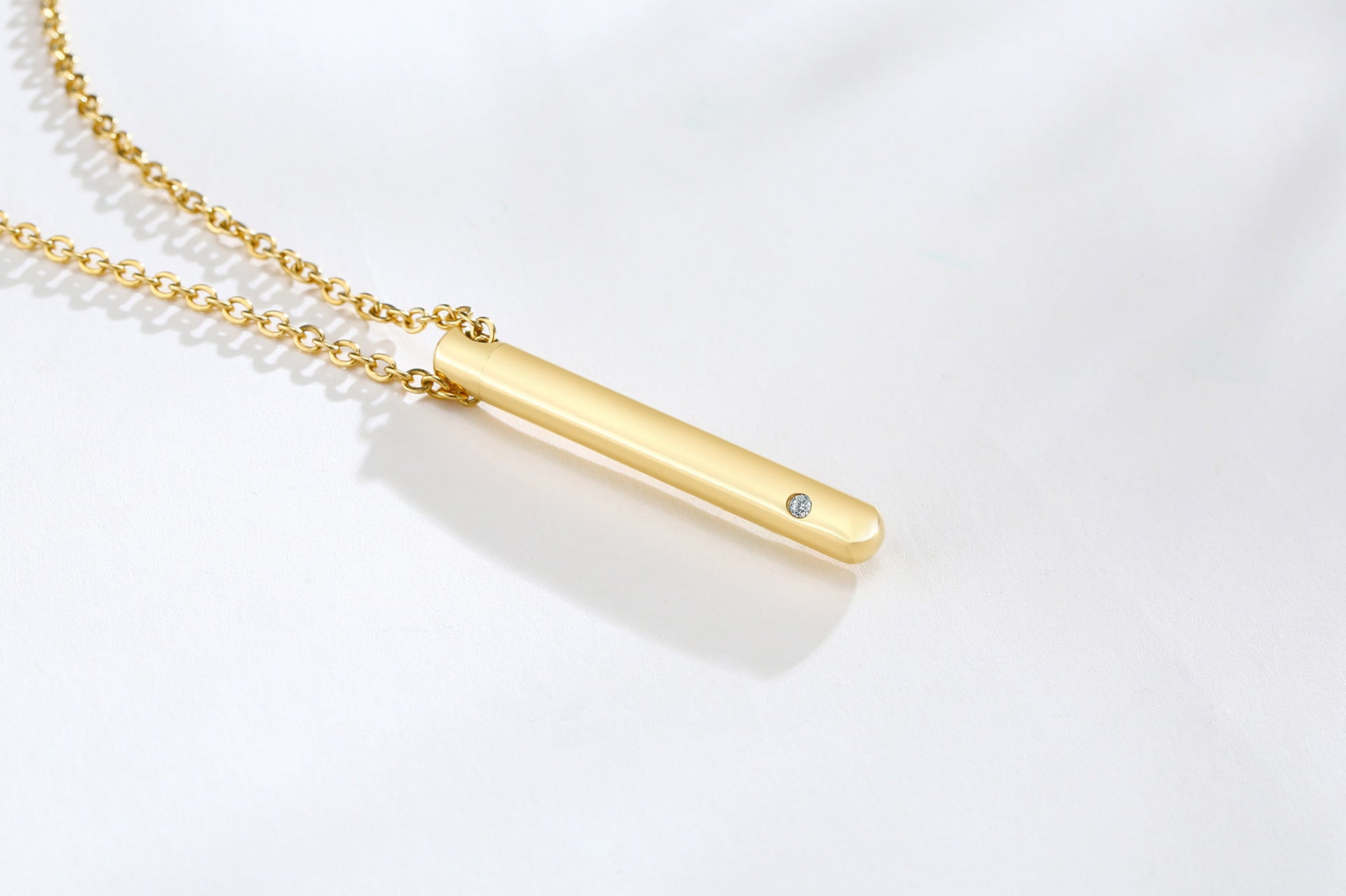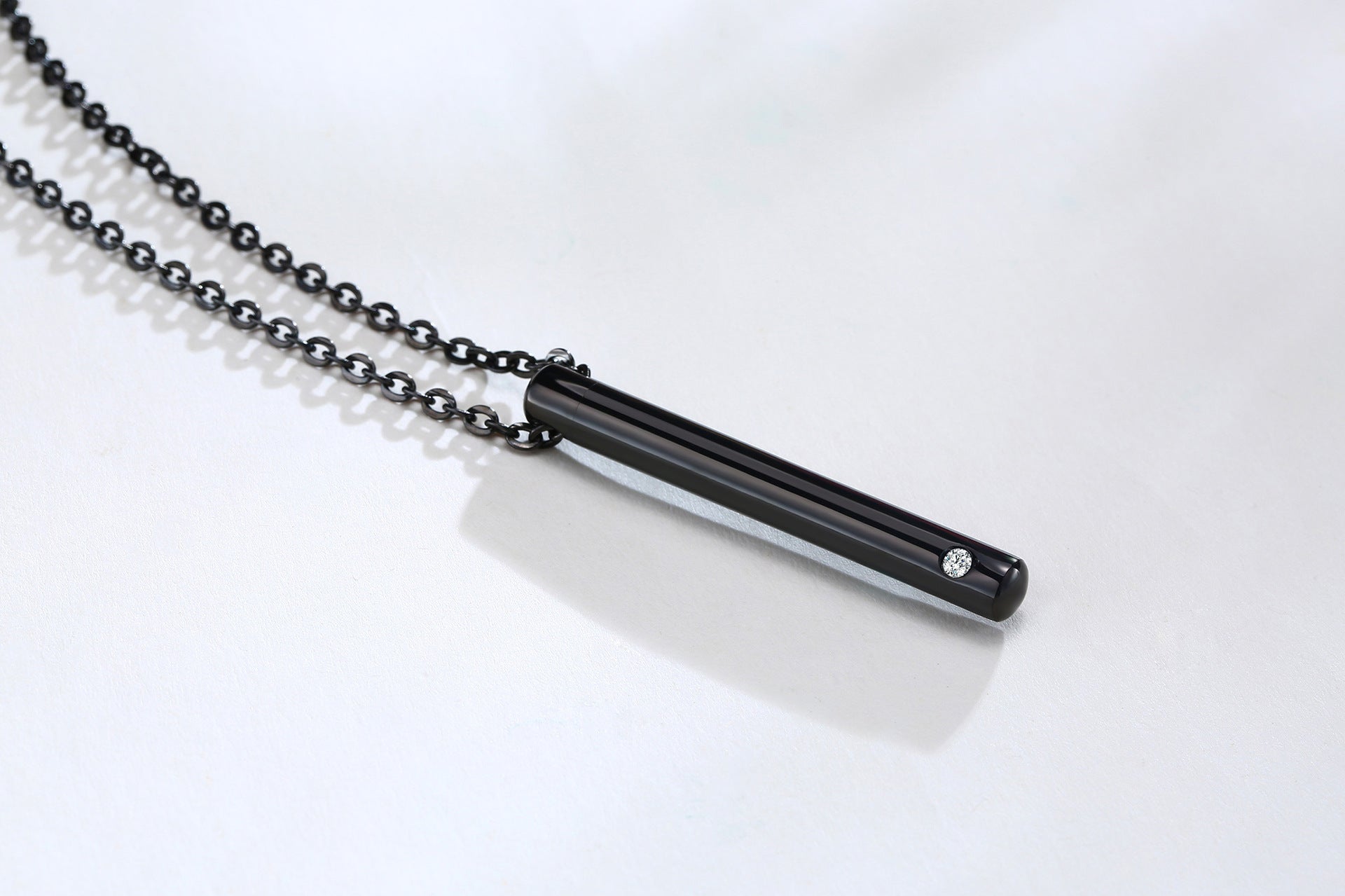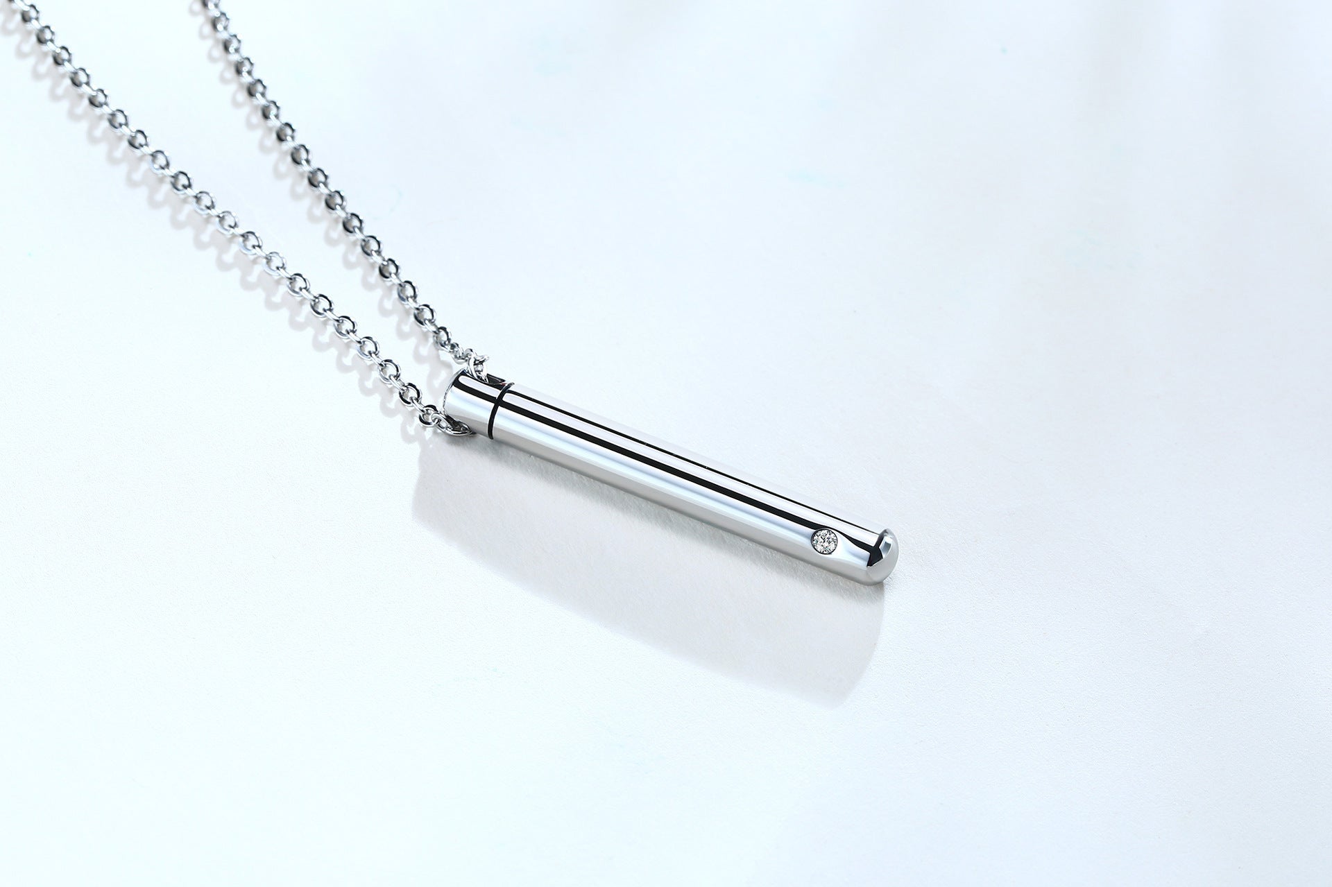 Elevate your jewelry collection with this stunning stainless steel zircon cylindrical pendant necklace. Embrace the blend of beauty and remembrance today!