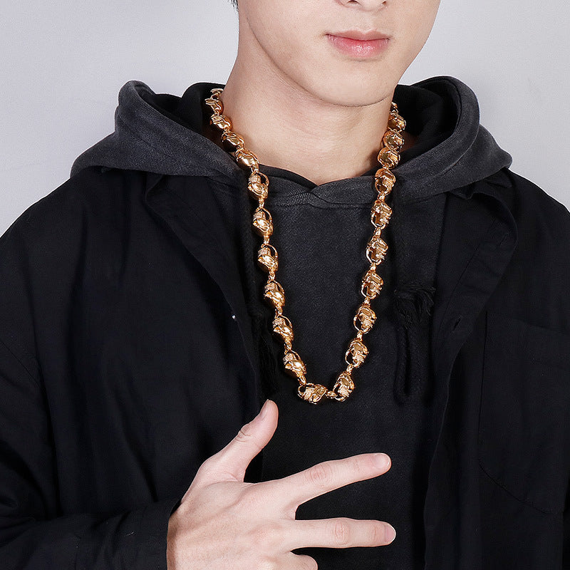 Step into the world of edgy fashion with our European and American domineering personality fashion skull punk style men's necklace. This statement piece is designed for the modern man who isn't afraid to showcase his unique style.